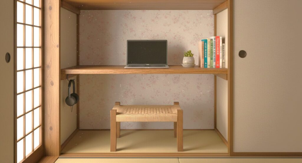 押し入れを趣味のスペースとして活用する一つの使い方が、中段を机代わりにして使うこと。