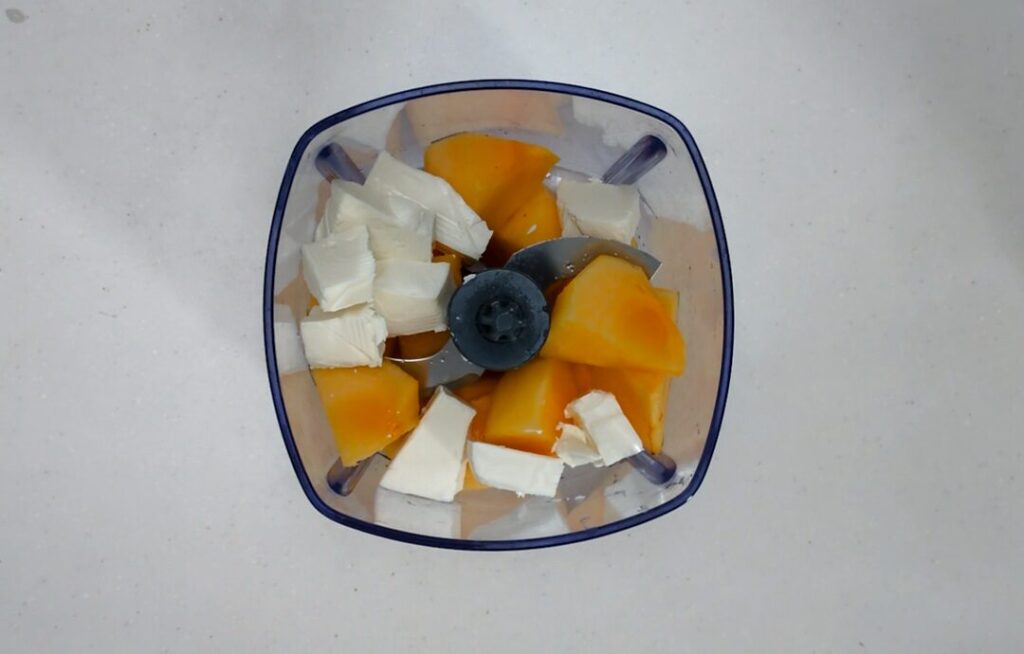 ③フードプロセッサーにクリームチーズとレモン汁を加える